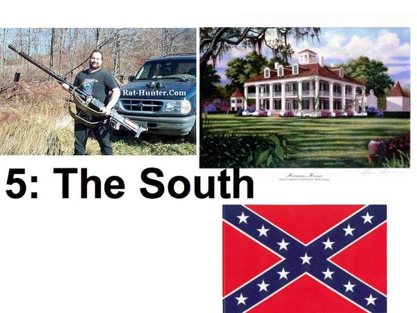 南部区几个州在美国南北内战时候割据成美国南部邦联,如今仍然保持对曾经独立骄傲,因此美国南部邦联国旗在南部经常出现。
