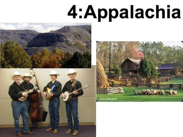 阿巴拉契亚山脉区,美式贫穷山区,教育水平较差,交通不便,煤矿是当地经济的主要支柱。