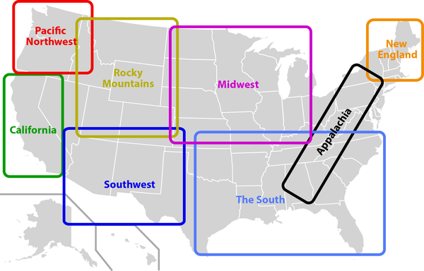 美国如何划区域?没有正确的划分方式,下面是我按个人印象划的而已。