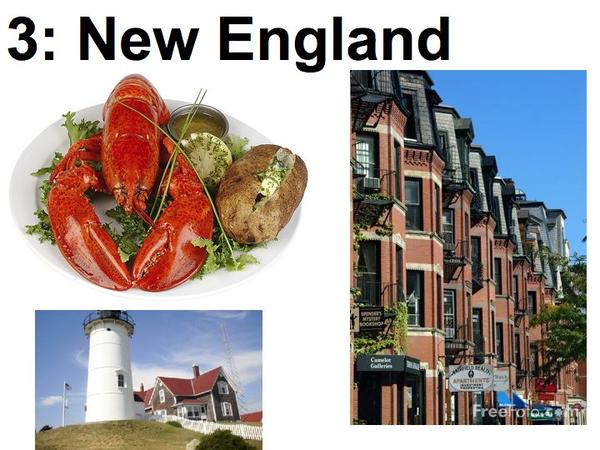 新英格兰原来英格兰的殖民地,虽然面积不大,但经济,教育很发达,海鲜很新鲜,建筑有英国乔治风格的多,历史古迹景点多。